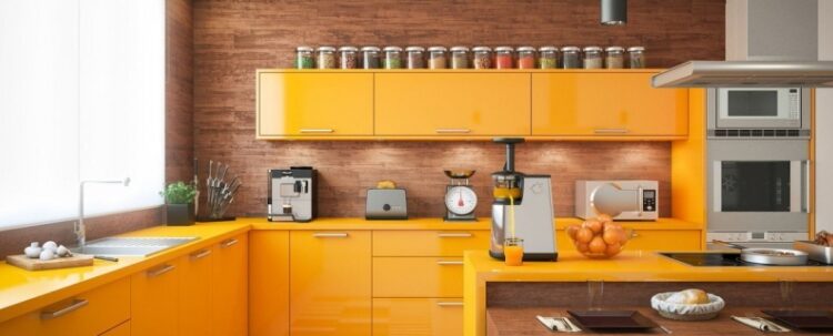 - Основной цвет стен или кухонного гарнитура. Этот цвет может стать ярким акцентом в интерьере и добавить ему энергии и тепла.