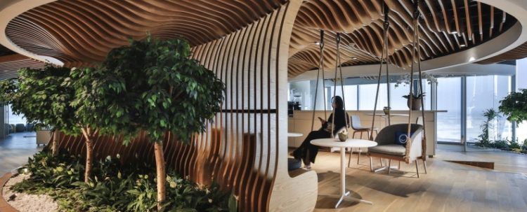 Это офисное здание является примером интеграции биофильного дизайна с природой. Здание имеет зеленые стены из живых растений, которые улучшают качество воздуха и снижают уровень шума. Кроме того, внутри здания есть вертикальные сады, которые создают дополнительные рабочие пространства и зоны отдыха.