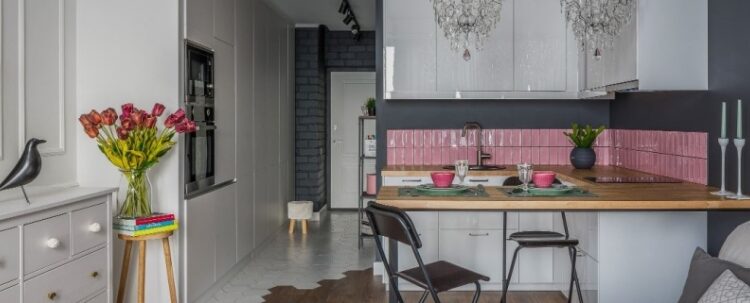 Лучше всего подобрать для однокомнатной квартиры светлую палитру: светлые тона коричневого, серого, розового, голубого; бежевую или белую. Мебель, текстиль и элементы декора в таком случае лучше выбрать в контрастных оттенках.