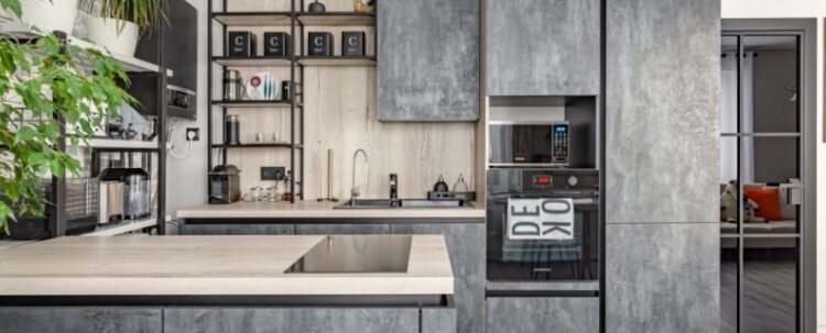Кроме того, если темный оттенок серого преобладает на мебельных фасадах, то следует хотя бы отказаться от верхних шкафов с таким окрасом. Можно выбрать светло-серую палитру для верха – и темно-серую для низа. Если же обе части гарнитура выполнены в одном – темной оттенке серого цвета, то для фартука в обязательном порядке должен использоваться светлый, если не белый цвет.