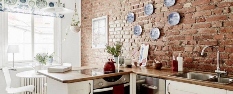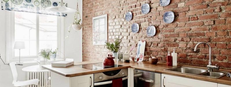 - Стена, оформленная декоративной штукатуркой. Этот материал позволяет создавать разнообразные текстуры и эффекты на стене, что придаст вашей кухне уникальный вид.