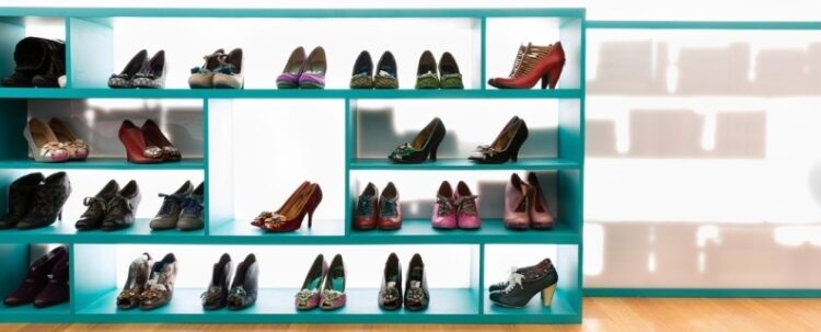 Обувные стойки и открытые стеллажи наиболее уместны и удобны в спальнях, которые оборудованы гардеробом (отдельной комнатой, небольшой зоной, или гардеробной нишей). Стеллажи отлично справляются с задачей бережного и аккуратного хранения обуви: изделия не мнутся и не зажимаются, их прекрасно видно, а значит можно быстро подобрать нужную пару.