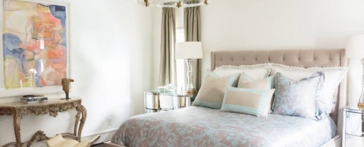 Пользуется популярностью традиционный французский интерьерный стиль. Изголовье кровати и изножье с тафтинговым плотным каркасом – это центральный элемент такой романтичной спальни. А при этом учитываем выбор палитры цветов. Это в основном мягкие оттенки с сегментными стенами, которые обрамляются красивыми изображениями и росписями.