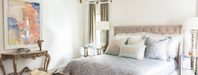 - Очень красиво и романтично будут смотреться интерьеры для спальни в розовато-лиловых тонах, особенно с сочетанием дорогого белоснежного постельного белья.