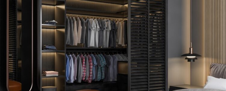 Загородить полки с вещами во всех случаях можно разными материалами: от тканевой ширмы до стеклянной перегородки или деревянных панелей.