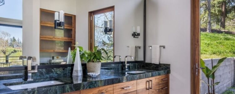 - Серый. Сочетание серого и бежевого цветов подойдет современному стилю. Допускает использование натурального камня, но требует много естественного и искусственного освещения.