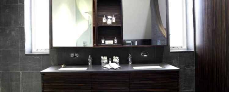 Современные шкафы с зеркальными шкафами часто дополняют встроенными электрическими розетками для комфортного пользования электробритвой или феном.
